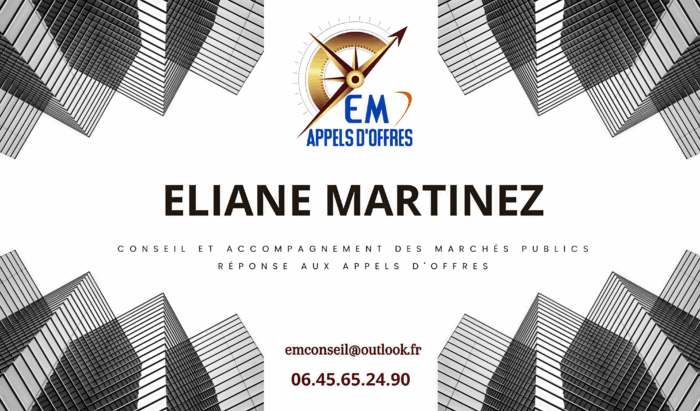 Vous aimeriez vous lancer ? N’hésitez pas à me consulter, je vous dirais clairement et gratuitement si oui ou non votre entreprise est structurée pour répondre aux marchés publics. Je pourrais vous indiquer ce qu’il faut mettre en place pour qu’elle soit compétitive. Pas de langue de bois, je suis là pour vous soumettre les réelles possibilités que vous avez dans un domaine très concurrentiel.