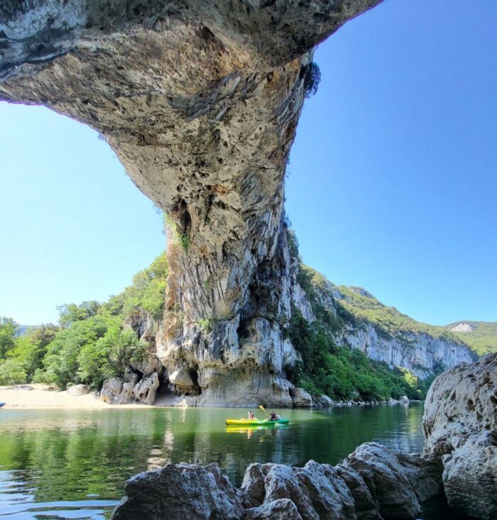 Petite location de canoë kayak à Vallon Pont d’Arc, nous vous proposons la location de canoë kayak sur différents parcours avec ou sans guide. Location de paddle, rafting quand les niveaux de la rivière le permettent et canyoning.